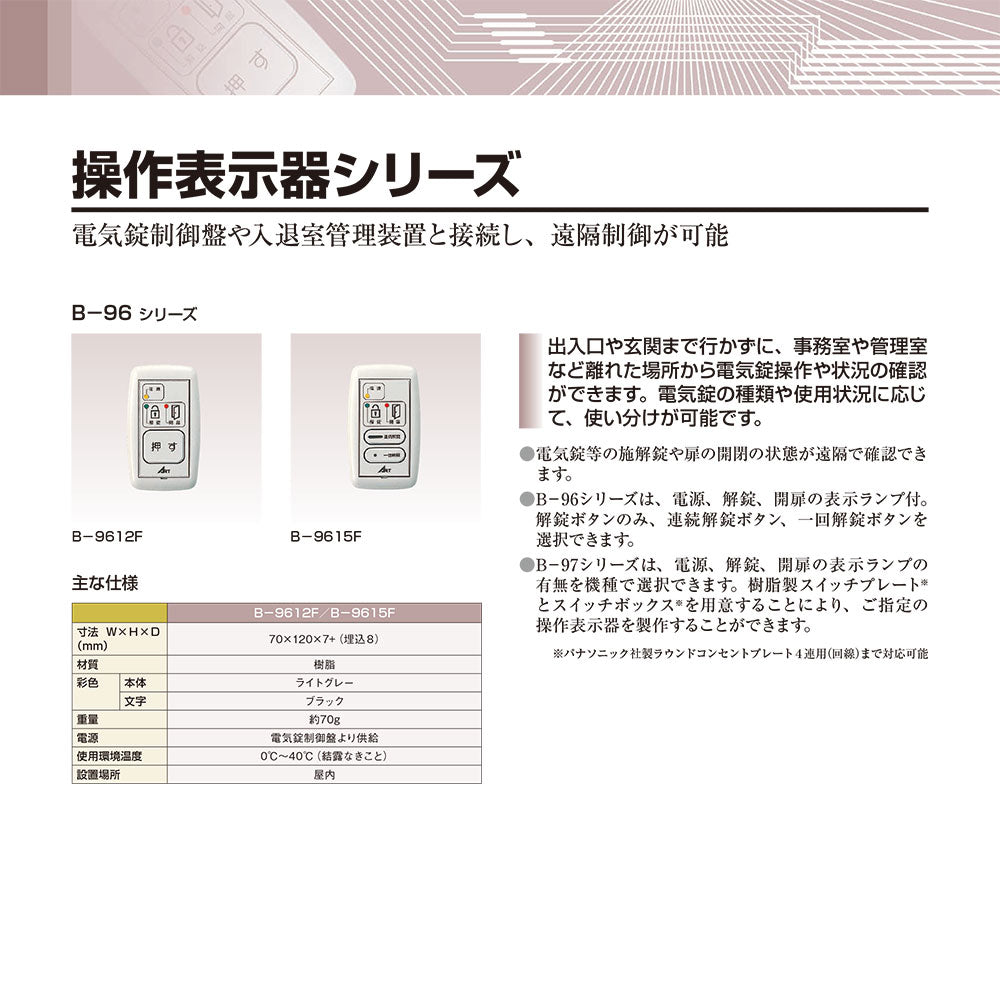 アート B-9615F 操作表示器 電気錠解錠ボタン