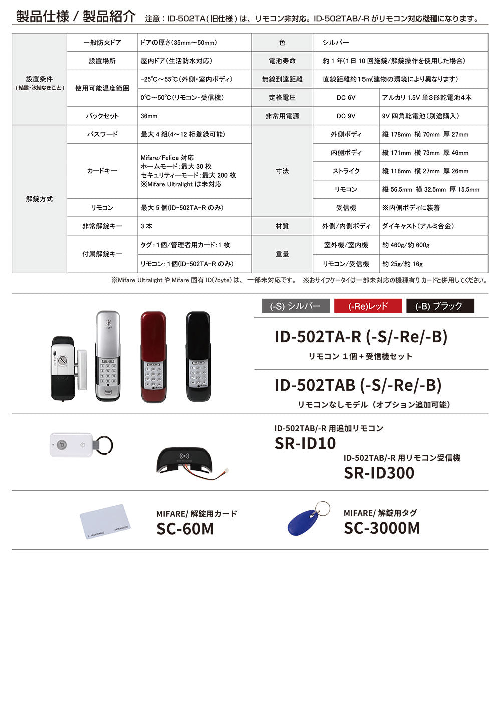 ・解錠方式:暗証番号・カード(FeliCa/MIFARE)・非常キー。