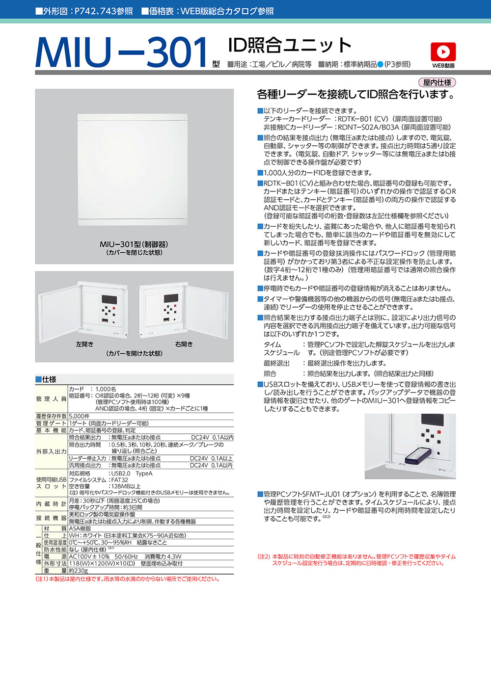 美和ロック MIU-301 ID照合ユニット電気錠制御盤(WH)