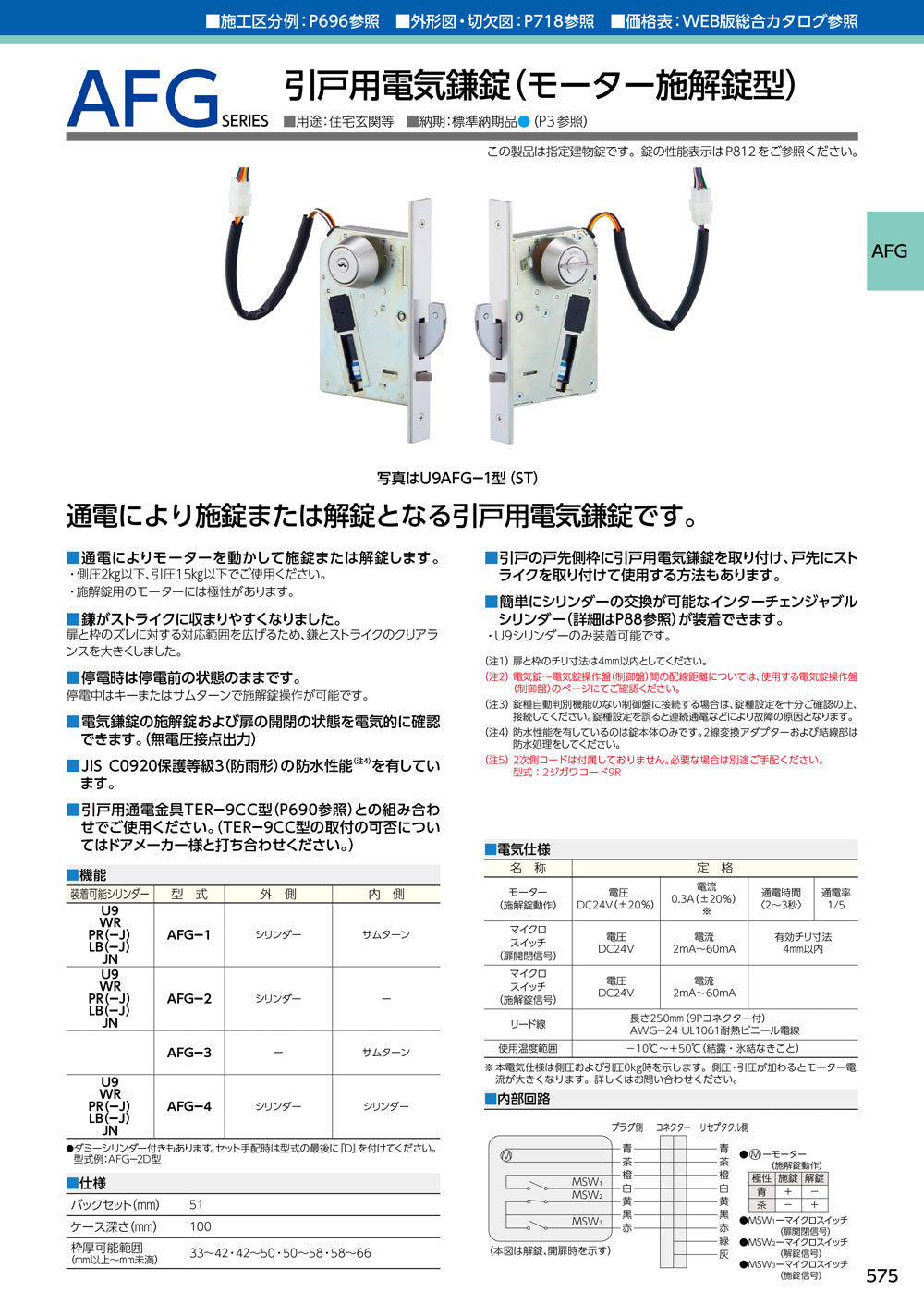 美和ロック 引戸用電気鎌錠 U9 AFG-1 BT51 DT33〜41